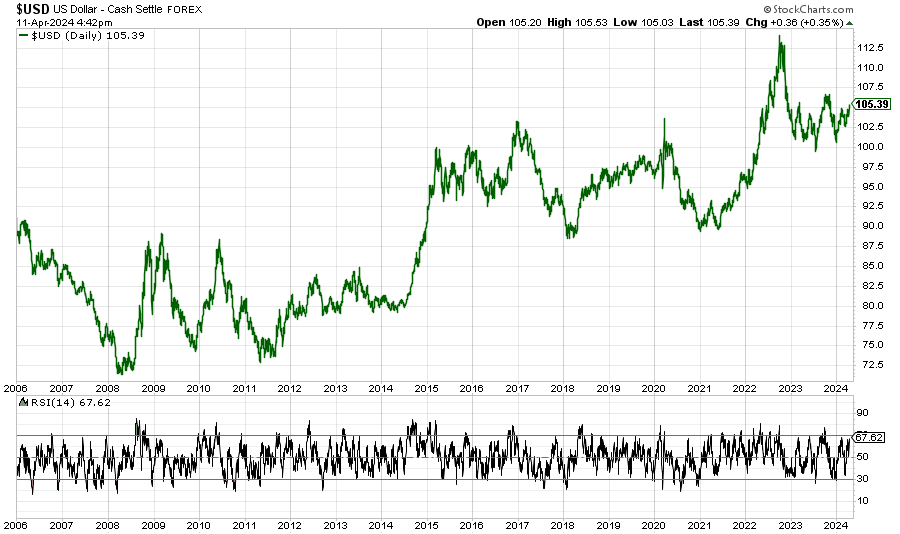 This synchronized interest rate-cutting cycle could further fuel the upside in the US dollar. The dollar index is already trading at the highest level since November 2023.