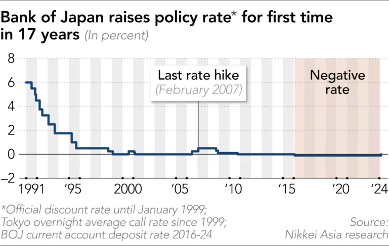In the last 40 years, there was only one occurrence when all 11 were reducing borrowing costs. That was during the midst of the Great Financial Crisis in 2008. This time, the only exception is the Bank of Japan which in March raised rates for the first time in 17 years, ending the negative rates era.